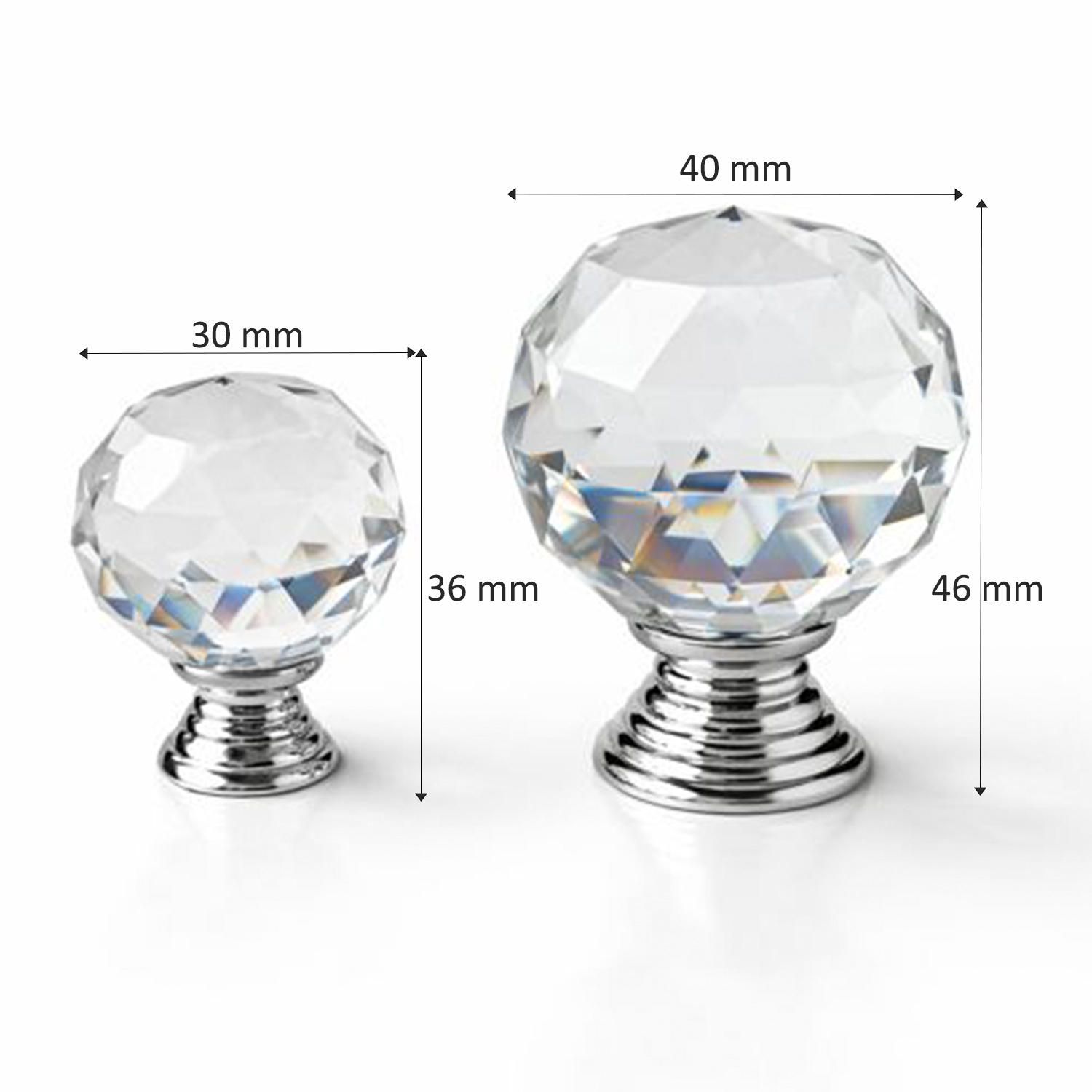 Butoane de cristal lustruite in formă de diamant stralucitor, rezistente si usor de instalat.